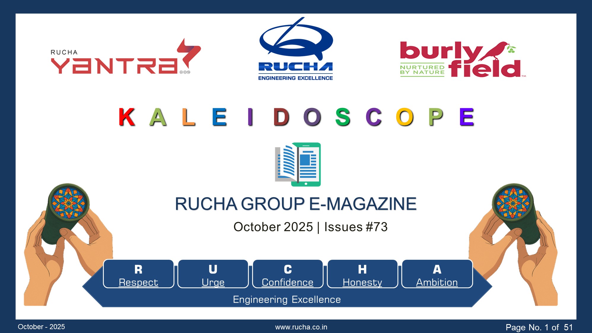 Dear Ruchaites, Glad to inform you that the Kaleidoscope - Rucha Group E-Magazine Oct 2025 is available on our website. Please do visit the below-mentioned link for your preferable reading about our group-wide activities in regard to our business & social peripherals.