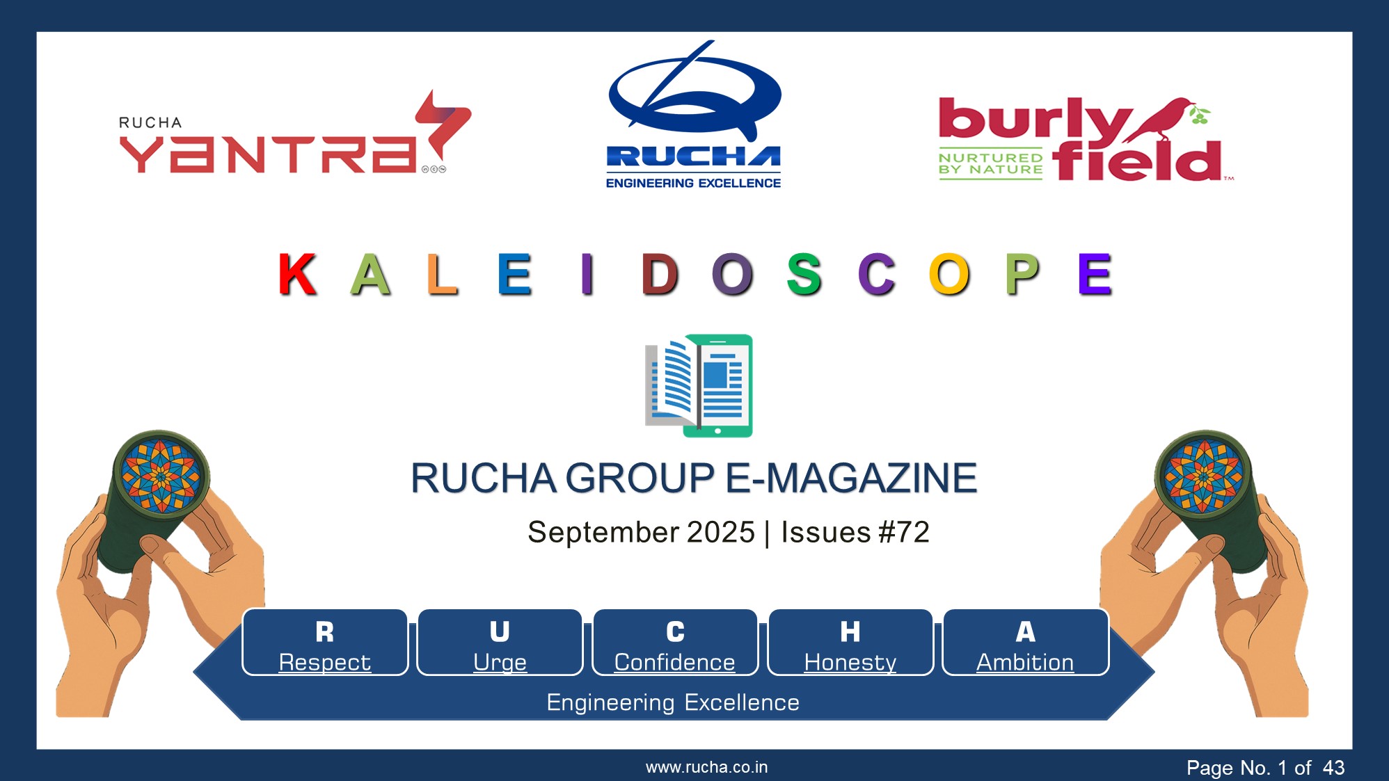 Dear Ruchaites, Glad to inform you that the Kaleidoscope - Rucha Group E-Magazine Sep 2025 is available on our website. Please do visit the below-mentioned link for your preferable reading about our group-wide activities in regard to our business & social peripherals.